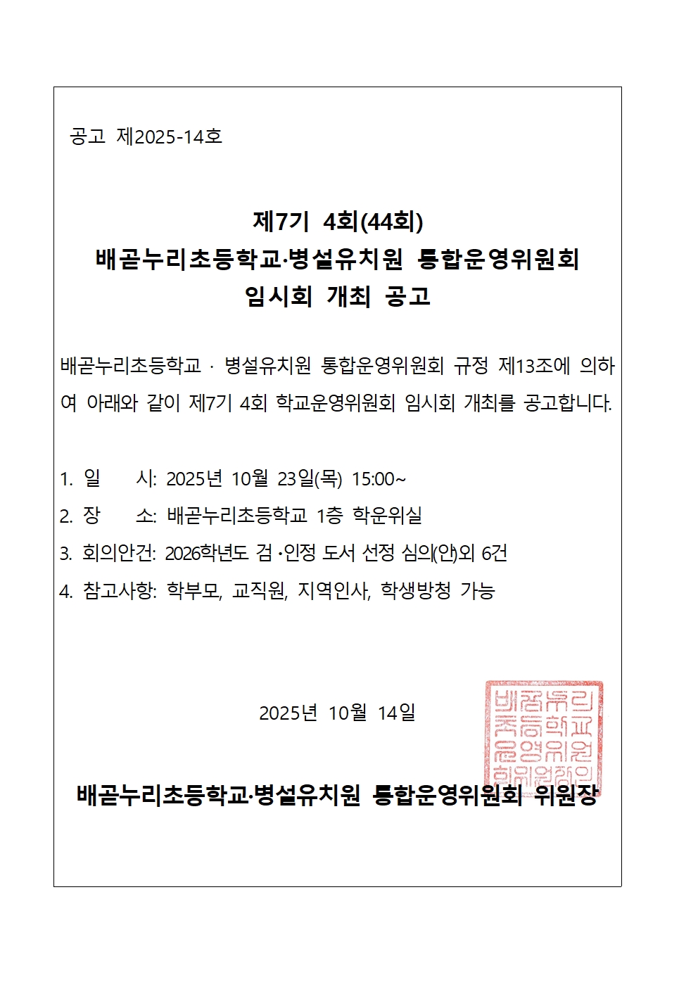 [ÀϹÝ] 2025Çг⵵ Á¦7±â 4(44)ȸ ¹è°ð´©¸®ÃÊ.º´¼³À¯Ä¡¿ø ÅëÇտÀ§¿øÈ¸ ÀÓ½Ãȸ °³ÃÖ
