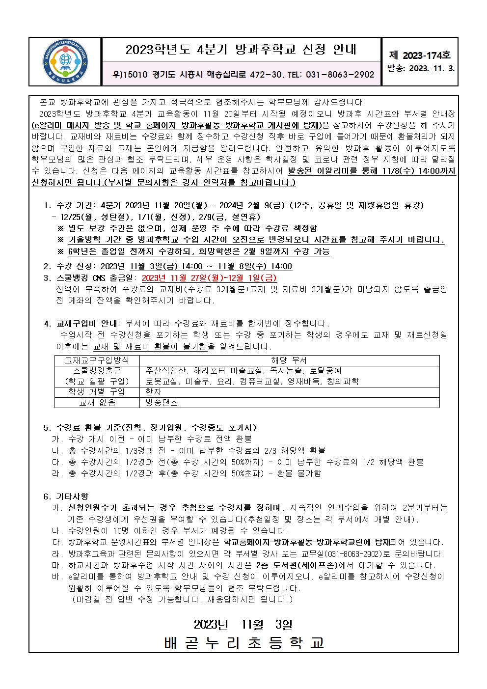 2023Çг⵵ 4ºÐ±â ¹æ°úÈÄÇб³ ½Åû ¾È³»ÀÔ´Ï´Ù.