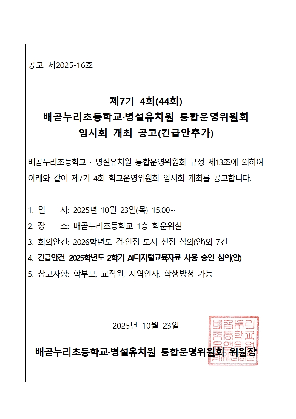 [ÀϹÝ] 2025Çг⵵ Á¦7±â 4(44)ȸ ¹è°ð´©¸®ÃÊ.º´¼³À¯Ä¡¿ø ÅëÇտÀ§¿øÈ¸ ±ä±Þ¾È Ãß°¡