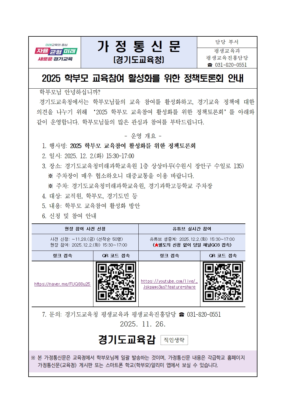 [ÀϹÝ] 2025 Çкθ𠱳À°Âü¿© Ȱ¼ºÈ¸¦ À§ÇÑ Á¤Ã¥Åä·Ðȸ ¾È³»
