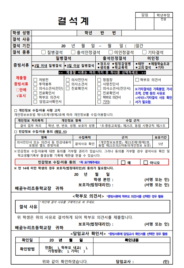 ¹è°ð´©¸®ÃʵîÇб³ ¾È³»Àå 2024-7È£(24³â 2¿ù 23ÀÏ) "°á¼®¿¡ °üÇÑ ±ÔÁ¤ ¾È³»" ¹®°ÇÀÌ "2024°æ±âµµ Ãʵî ÇÐÀû ±æ¶óÀâÀÌ" ¹èºÎ·Î ÀÎÇÏ¿© º¯°æµÈ "°á¼®°è"¾ç½ÄÀ» ´Ù½Ã ¾È³»µå¸³´Ï´Ù.